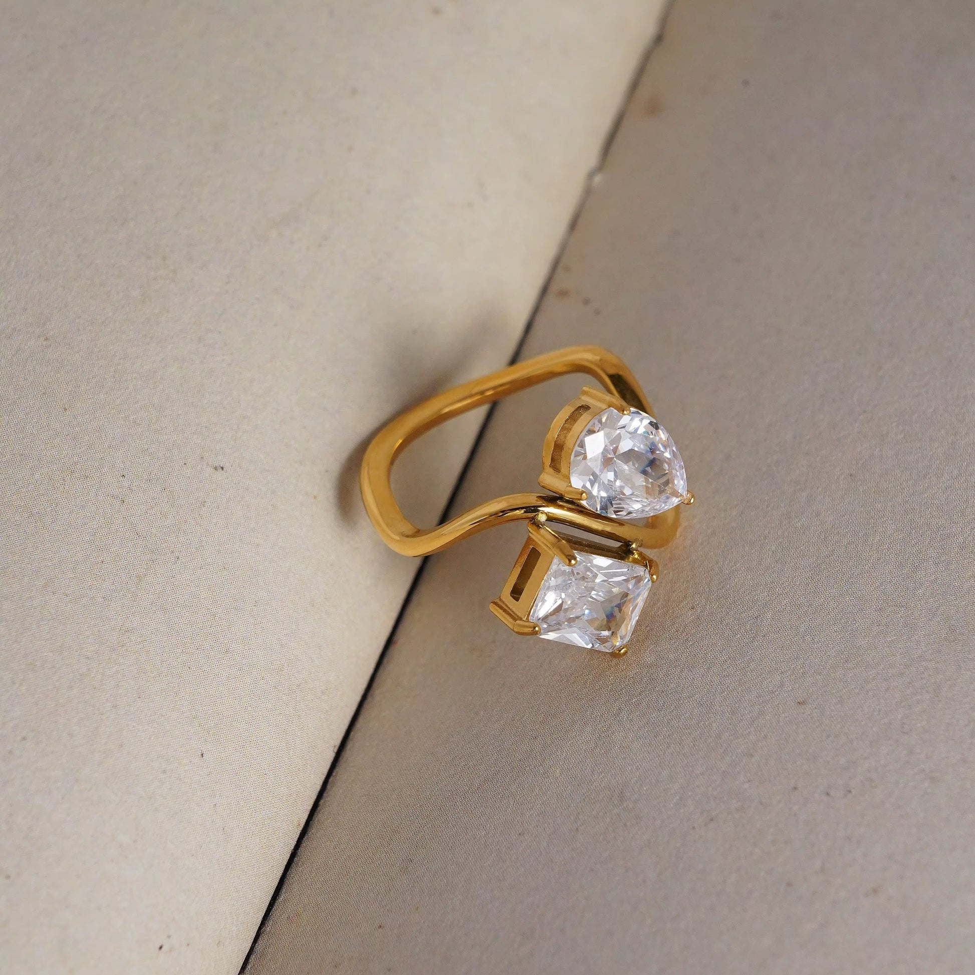 Trendy 18k PVD Gold Plated Stainless Steel Minimalist Clear Drop Square Zircon Ring